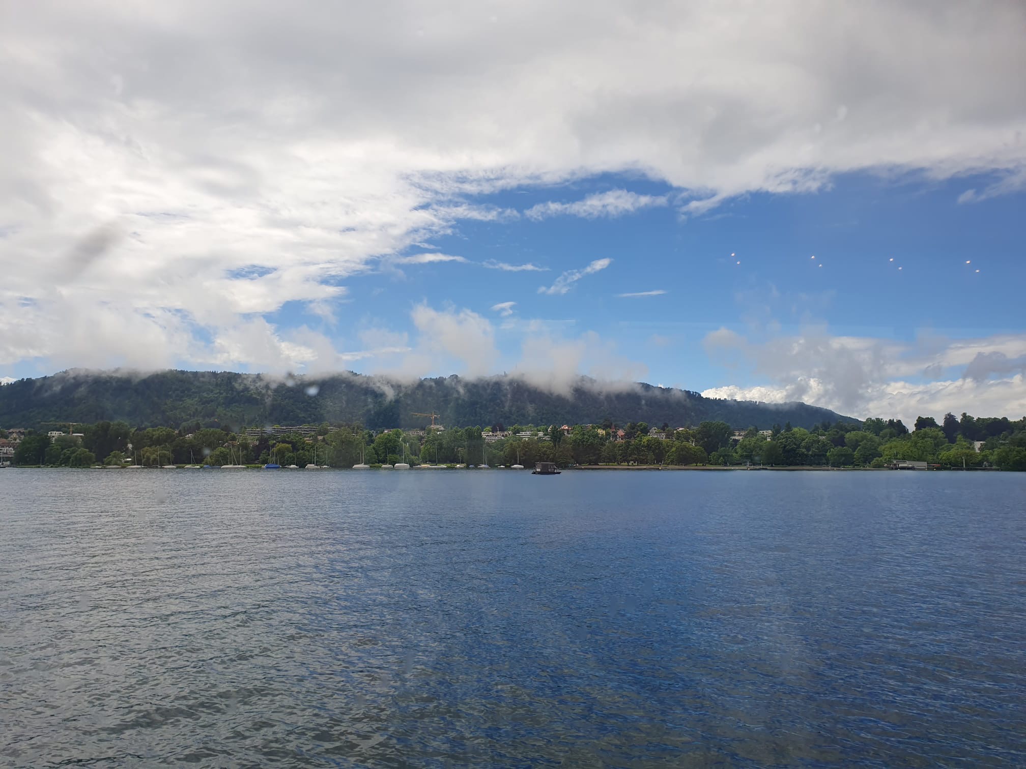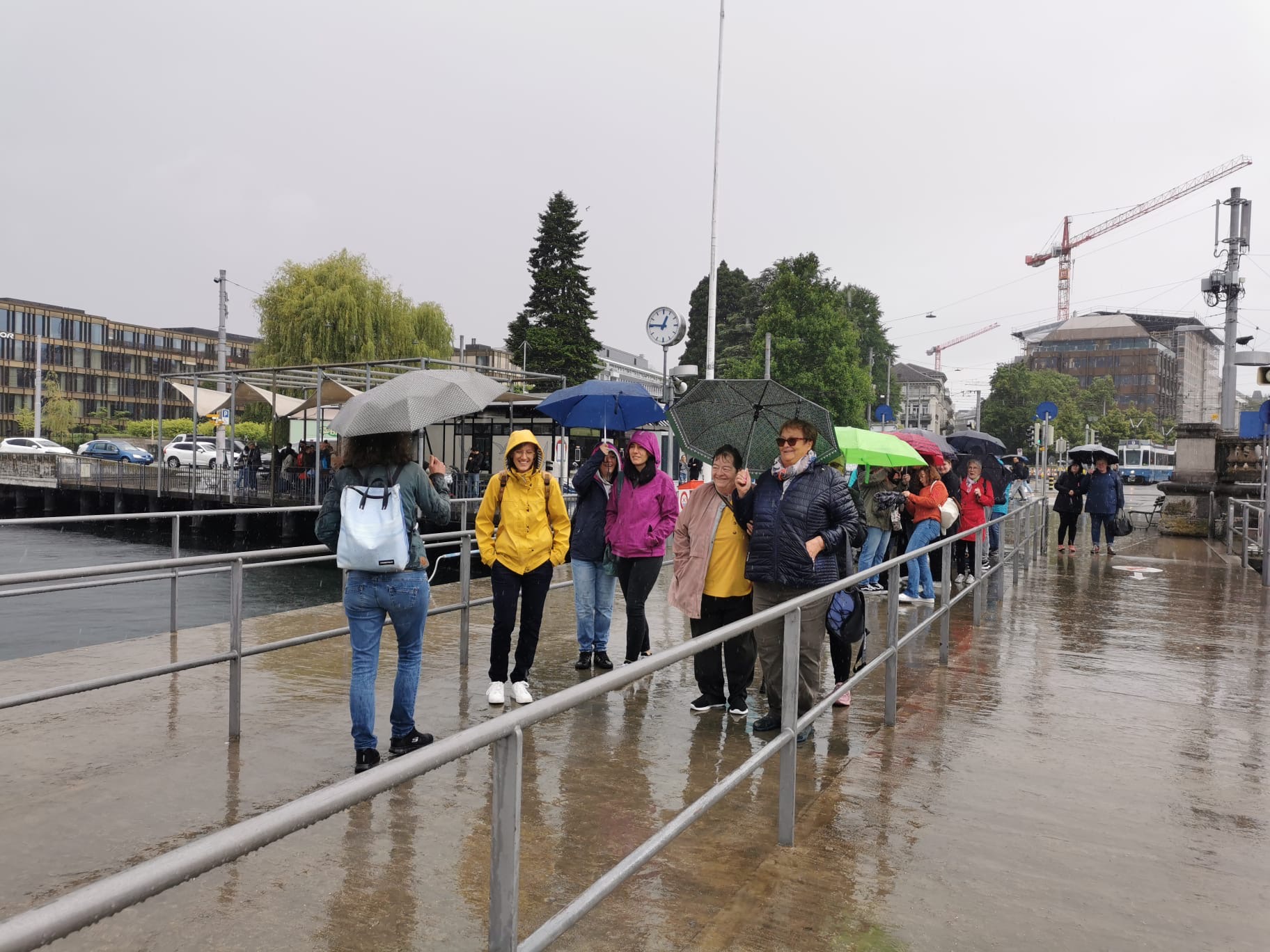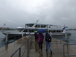A 13h, rendez-vous sur le lac de Zurich, avec Albis, le bateau qui allait promener et restaurer tout ce petit monde pendant 1h30, malheureusement la pluie s’est invitée aussi à tout ceci, une grosse rincée les accompagna à la sortie du car jusqu’au bateau.