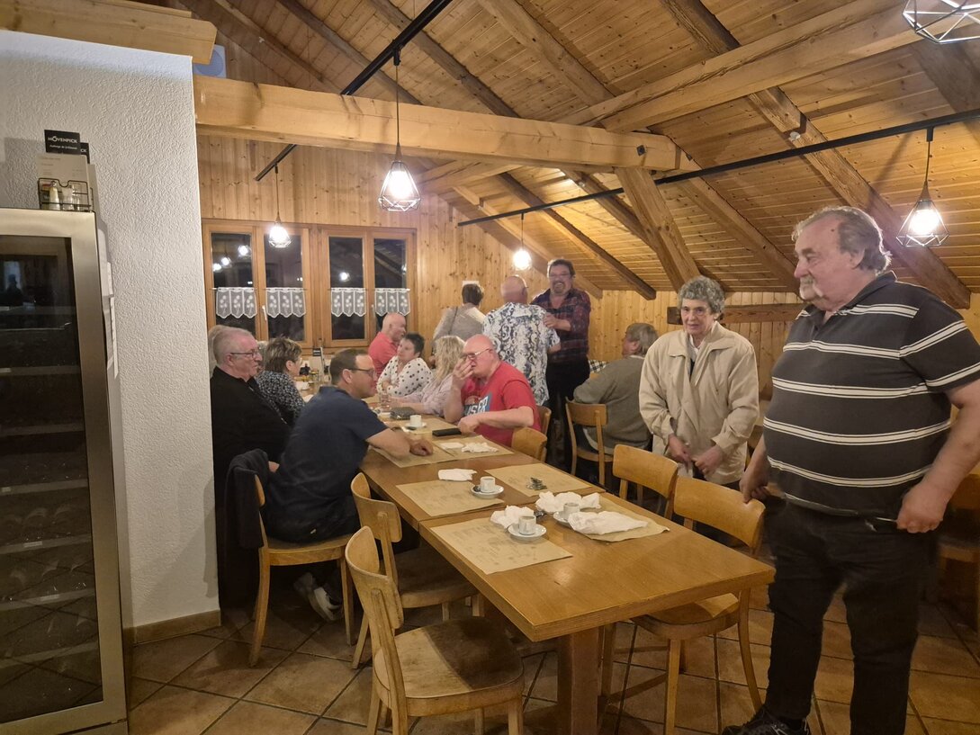 Le soir, changement de menu : un délicieux émincé de poulet au curry a régalé toute l’équipe, délaissant ainsi la traditionnelle fondue. La soirée s’est ensuite déroulée dans une ambiance détendue, ponctuée par quelques cheminots tentant, sans succès, de recruter de nouveaux talents pour les CFF !