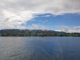 Un très beau cadre pour se restaurer, une jolie vue des rives du lac aux montagnes plus lointaine.
